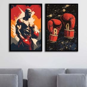 Kit 2 Quadros Artes Boxe - Lutador E Luvas 33X24Cm - Vidro