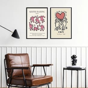 Kit 2 quadros artes keith haring - rosa 33x24cm - com vidro Moldura: madeira preta Informações do produto tire todas as suas dúvidas no descritivo abaixo: decoração para quarto, sala, cozinha, escritório, área gourmet e muito mais. Chega de paredes vazias medidas - cada peça tem 33x24cm a4 . Material do papel - papel fotográfico brilhante de altíssima resolução acabamento - todos os quadros são acompanhados de vidro para proteção da imagem. - moldura em madeira maciça na cor preta ou branca conforme produto escolhido e pendurador . - os quadros são embalados de forma segura com plástico bolha com camada dupla de acordo com o tamanho dos quadros. Garantia - garantia de 3 meses. Meu quadro chegou. Como posso fixá-lo Você precisa apenas de um martelo e um prego, pois os quadros já vão acompanhados de penduradores. Esta é a forma mais indicada. Como posso limpar meu quadro A limpeza é feita como um móvel comum da sua casa. Apenas um pano seco ou espanador são suficientes para tal
