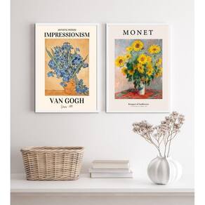 Kit 2 quadros artes monet e van gogh- flores 24x18cm