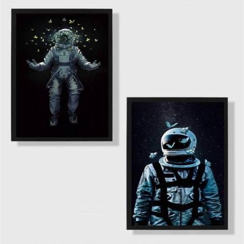 Kit 2 quadros astronautas com borboletas 24x18cm Moldura: madeira preta Informações do produto tire todas as suas dúvidas no descritivo abaixo: decoração para quarto, sala, cozinha, escritório, área gourmet e muito mais. Chega de paredes vazias medidas - cada peça tem 24x18cm a5 . Material do papel - papel fotográfico brilhante de altíssima resolução acabamento - todos os quadros são acompanhados de uma película de acetato para proteção da imagem. - moldura em madeira maciça na cor branca e pendurador móvel que pode ser retirado facilmente caso deseje fixar com fita dupla face. - os quadros são embalados de forma segura com plástico bolha com camada dupla de acordo com o tamanho dos quadros. - de 3 meses prazo de envio pedimos 24 horas úteis no máximo para enviar seu pedido após o envio, segue os prazos normais dos correios, cerca de 7 exceto para norte e nordeste, que pode ser de até 14 . Em diversas cidades, este prazo normalmente é reduzido, mas depende do prazo dos correios. Meu quadro chegou. Como posso fixá-lo Você precisa apenas de um martelo e um prego, pois os quadros já vão acompanhados de penduradores. Esta é a forma mais indicada. Caso prefira, você pode utilizar uma fita dupla face neste caso, sugerimos de alta qualidade para evitar que descole e seu quadro caia . Como posso limpar meu quadro A limpeza é feita como um móvel comum da sua casa. Apenas um pano seco ou espanador são suficientes para tal Marca: Não Informado Ean: 7892091093503