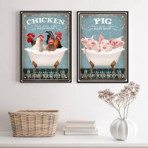 Kit 2 quadros banheiro animais fazenda 24x18cm Moldura: madeira branca Informações do produto tire todas as suas dúvidas no descritivo abaixo: decoração para quarto, sala, cozinha, escritório, área gourmet e muito mais. Chega de paredes vazias medidas - cada peça tem 24x18cm a5 . Material do papel - papel fotográfico brilhante de altíssima resolução acabamento - todos os quadros são acompanhados de uma película de acetato para proteção da imagem. - os quadros são embalados de forma segura com plástico bolha com camada dupla de acordo com o tamanho dos quadros. Garantia - garantia de 3 meses. Meu quadro chegou. Como posso fixá-lo Você precisa apenas de um martelo e um prego, pois os quadros já vão acompanhados de penduradores. Esta é a forma mais indicada. Caso prefira, você pode utilizar uma fita dupla face neste caso, sugerimos de alta qualidade para evitar que descole e seu quadro caia . Como posso limpar meu quadro A limpeza é feita como um móvel comum da sua casa. Apenas um pano seco ou espanador são suficientes para tal