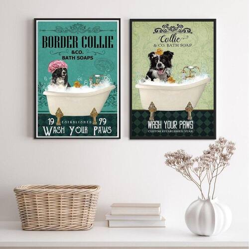 Kit 2 quadros banheiro cão border collie 33x24cm Moldura: madeira branca Informações do produto tire todas as suas dúvidas no descritivo abaixo: decoração para quarto, sala, cozinha, escritório, área gourmet e muito mais. Chega de paredes vazias medidas - cada peça tem 33x24cm a4 . Material do papel - papel fotográfico brilhante de altíssima resolução acabamento - todos os quadros são acompanhados de uma película de acetato para proteção da imagem. - os quadros são embalados de forma segura com plástico bolha com camada dupla de acordo com o tamanho dos quadros. Garantia - garantia de 3 meses. Meu quadro chegou. Como posso fixá-lo Você precisa apenas de um martelo e um prego, pois os quadros já vão acompanhados de penduradores. Esta é a forma mais indicada. Caso prefira, você pode utilizar uma fita dupla face neste caso, sugerimos de alta qualidade para evitar que descole e seu quadro caia . Como posso limpar meu quadro A limpeza é feita como um móvel comum da sua casa. Apenas um pano seco ou espanador são suficientes para tal