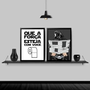 Kit 2 quadros banheiro darth 45x34cm Moldura: madeira branca Informações do produto tire todas as suas dúvidas no descritivo abaixo: decoração para quarto, sala, cozinha, escritório, área gourmet e muito mais. Chega de paredes vazias. Medidas - cada peça tem 45x34cm a3 . Material do papel - papel fotográfico brilhante de altíssima resolução acabamento - todos os quadros são acompanhados de uma película de acetato para proteção da imagem. - os quadros são embalados de forma segura com plástico bolha com camada dupla de acordo com o tamanho dos quadros. Garantia - garantia de 3 meses. Meu quadro chegou. Como posso fixá-lo Você precisa apenas de um martelo e um prego, pois os quadros já vão acompanhados de penduradores. Esta é a forma mais indicada. Caso prefira, você pode utilizar uma fita dupla face neste caso, sugerimos de alta qualidade para evitar que descole e seu quadro caia . Como posso limpar meu quadro A limpeza é feita como um móvel comum da sua casa. Apenas um pano seco ou espanador são suficientes para tal