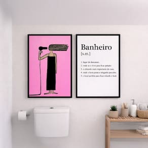 Kit 2 Quadros Banheiro Feminino Secador 33x24cm Mold Branca