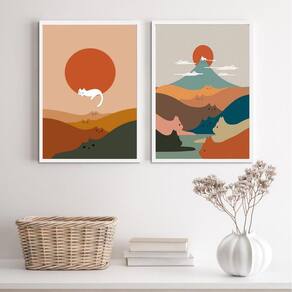 Kit 2 Quadros Bohos Montanhas De Gatinhos 45X34Cm