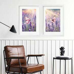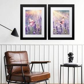 Kit 2 quadros borboletas lavanda - 60x48cm Moldura: madeira branca Informações do produto tire todas as suas dúvidas no descritivo abaixo: decoração para quarto, sala, cozinha, escritório, área gourmet e muito mais. Chega de paredes vazias medidas - cada peça tem 60x48cm . Material do papel - papel fotográfico brilhante de altíssima resolução acabamento - todos os quadros são acompanhados de vidro para proteção da imagem. - moldura em madeira maciça na cor preta ou branca conforme produto escolhido e pendurador. - paspatur branco com 7cm de largura - os quadros são embalados de forma segura com plástico bolha com camada dupla de acordo com o tamanho dos quadros. Garantia - garantia de 3 meses. Meu quadro chegou. Como posso fixá-lo Você precisa apenas de um martelo e um prego, pois os quadros já vão acompanhados de penduradores. Esta é a forma mais indicada. Como posso limpar meu quadro A limpeza é feita como um móvel comum da sua casa. Apenas um pano seco ou espanador são suficientes para tal