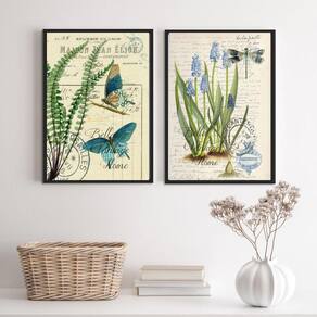 Com o Kit 2 Quadros Botânica Vintage Borboletas Libélula 24X18Cm, você terá uma decoração encantadora e cheia de personalidade para o seu quarto, sala, cozinha, escritório, área gourmet e muito mais.
