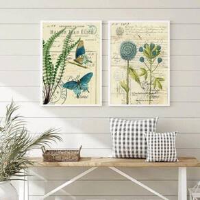 O Kit 2 Quadros Botânica Vintage Borboletas Flores Azuis traz charme e elegância para a decoração do seu ambiente. Com medidas de 24x18cm cada peça, esses quadros são perfeitos para decorar quartos, salas, cozinhas, escritórios, áreas gourmet e muito mais.