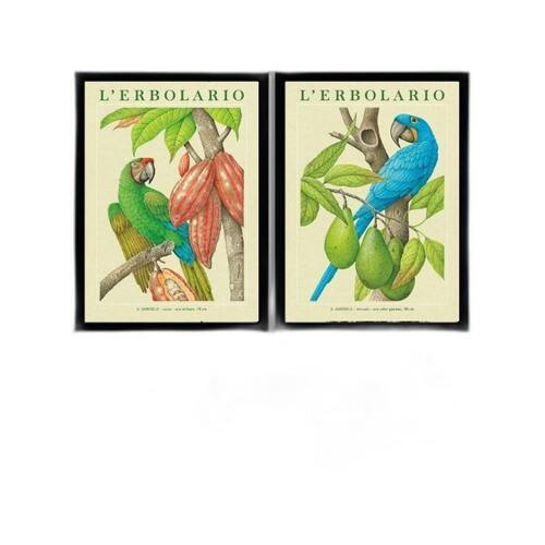 Kit 2 Quadros Botânicos Araras Tropicais 33X24Cm - Com Vidro