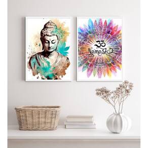 Kit 2 quadros buda namastê- aquarela 45x34cm - com vidro Moldura: madeira branca Informações do produto tire todas as suas dúvidas no descritivo abaixo: decoração para quarto, sala, cozinha, escritório, área gourmet e muito mais. Chega de paredes vazias medidas - cada peça tem 45x34cm a3 . Material do papel - papel fotográfico brilhante de altíssima resolução acabamento - todos os quadros são acompanhados de vidro para proteção da imagem. - moldura em madeira maciça na cor preta ou branca conforme produto escolhido e pendurador . - os quadros são embalados de forma segura com plástico bolha com camada dupla de acordo com o tamanho dos quadros. Garantia - garantia de 3 meses. Meu quadro chegou. Como posso fixá-lo Você precisa apenas de um martelo e um prego, pois os quadros já vão acompanhados de penduradores. Esta é a forma mais indicada. Como posso limpar meu quadro A limpeza é feita como um móvel comum da sua casa. Apenas um pano seco ou espanador são suficientes para tal Ean: 7897133335788