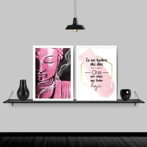 Kit 2 quadros buda rosa dias que orei 45x34cm - com vidro Moldura: madeira branca