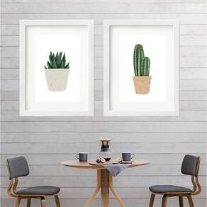 Kit 2 quadros cacto e suculenta - 60x48cm Moldura: madeira preta Informações do produto tire todas as suas dúvidas no descritivo abaixo: decoração para quarto, sala, cozinha, escritório, área gourmet e muito mais. Chega de paredes vazias medidas - cada peça tem 60x48cm . Material do papel - papel fotográfico brilhante de altíssima resolução acabamento - todos os quadros são acompanhados de vidro para proteção da imagem. - moldura em madeira maciça na cor preta ou branca conforme produto escolhido e pendurador. - paspatur branco com 7cm de largura - os quadros são embalados de forma segura com plástico bolha com camada dupla de acordo com o tamanho dos quadros. Garantia - garantia de 3 meses. Meu quadro chegou. Como posso fixá-lo Você precisa apenas de um martelo e um prego, pois os quadros já vão acompanhados de penduradores. Esta é a forma mais indicada. Como posso limpar meu quadro A limpeza é feita como um móvel comum da sua casa. Apenas um pano seco ou espanador são suficientes para tal