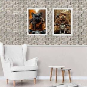 Kit 2 quadros cães motociclistas 24x18cm Moldura: madeira preta Informações do produto tire todas as suas dúvidas no descritivo abaixo: decoração para quarto, sala, cozinha, escritório, área gourmet e muito mais. Chega de paredes vazias medidas - cada peça tem 24x18cm a5 . Material do papel - papel fotográfico brilhante de altíssima resolução acabamento - todos os quadros são acompanhados de uma película de acetato para proteção da imagem. - os quadros são embalados de forma segura com plástico bolha com camada dupla de acordo com o tamanho dos quadros. Garantia - garantia de 3 meses. Meu quadro chegou. Como posso fixá-lo Você precisa apenas de um martelo e um prego, pois os quadros já vão acompanhados de penduradores. Esta é a forma mais indicada. Caso prefira, você pode utilizar uma fita dupla face neste caso, sugerimos de alta qualidade para evitar que descole e seu quadro caia . Como posso limpar meu quadro A limpeza é feita como um móvel comum da sua casa. Apenas um pano seco ou espanador são suficientes para tal