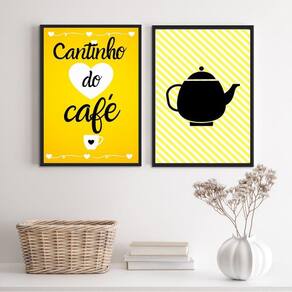 O Kit 2 Quadros Cantinho Do Café Amarelinho 24X18Cm - Vidro é perfeito para quem ama café e deseja decorar diversos ambientes, como quarto, sala, cozinha, escritório e área gourmet. Com medidas de 24x18cm A5 , cada peça é produzida em papel fotográfico brilhante de altíssima resolução, garantindo a qualidade da imagem.