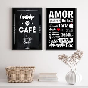 O Kit 2 Quadros Cantinho Do Café Amor Cozinha 33X24Cm - Vidro é perfeito para decorar diferentes ambientes, como quartos, salas, cozinhas, escritórios, áreas gourmet e muito mais. Com medidas de 33x24cm A4 , cada peça possui moldura de madeira preta que traz um toque de elegância e sofisticação.