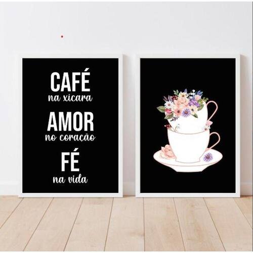 Kit 2 quadros café amor fé floral 24x18cm Moldura: madeira branca Informações do produto tire todas as suas dúvidas no descritivo abaixo: decoração para quarto, sala, cozinha, escritório, área gourmet e muito mais. Chega de paredes vazias medidas - cada peça tem 24x18cm a5 . Material do papel - papel fotográfico brilhante de altíssima resolução acabamento - todos os quadros são acompanhados de uma película de acetato para proteção da imagem. - moldura em madeira maciça na cor preta e pendurador móvel que pode ser retirado facilmente caso deseje fixar com fita dupla face. - os quadros são embalados de forma segura com plástico bolha com camada dupla de acordo com o tamanho dos quadros. Garantia - garantia de 3 meses. Meu quadro chegou. Como posso fixá-lo Você precisa apenas de um martelo e um prego, pois os quadros já vão acompanhados de penduradores. Esta é a forma mais indicada. Caso prefira, você pode utilizar uma fita dupla face neste caso, sugerimos de alta qualidade para evitar que descole e seu quadro caia . Como posso limpar meu quadro A limpeza é feita como um móvel comum da sua casa. Apenas um pano seco ou espanador são suficientes para tal Ean: 7898827414840