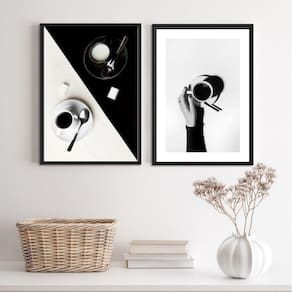 Compre agora mesmo o Kit 2 Quadros Fotografias Café Em Branco E Preto 33X24Cm e transforme a decoração da sua casa! Ean: 7898373480818