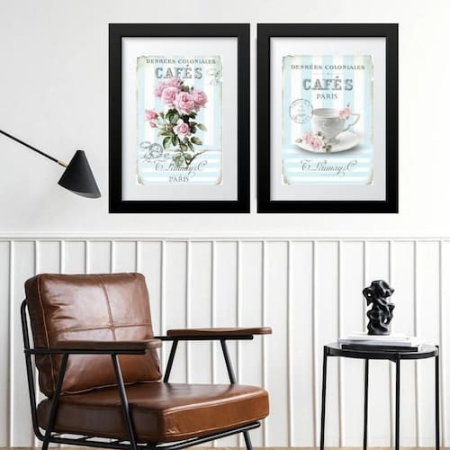 Kit 2 Quadros Café Flores Paris - 60X48Cm