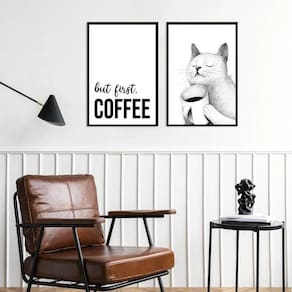 Kit 2 quadros café gato - but first coffee 60x48cm