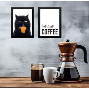 Kit 2 quadros café - gato emburrado 33x24cm Cor: moldura branca Informações do produto tire todas as suas dúvidas no descritivo abaixo: decoração para quarto, sala, cozinha, escritório, área gourmet e muito mais. Chega de paredes vazias medidas - cada peça tem 33x24cm a4 . Material do papel - papel fotográfico brilhante de altíssima resolução acabamento - todos os quadros são acompanhados de uma película de acetato para proteção da imagem. - os quadros são embalados de forma segura com plástico bolha com camada dupla de acordo com o tamanho dos quadros. - de 3 meses. Meu quadro chegou. Como posso fixá-lo Você precisa apenas de um martelo e um prego, pois os quadros já vão acompanhados de penduradores. Esta é a forma mais indicada. Caso prefira, você pode utilizar uma fita dupla face neste caso, sugerimos de alta qualidade para evitar que descole e seu quadro caia . Como posso limpar meu quadro A limpeza é feita como um móvel comum da sua casa. Apenas um pano seco ou espanador são suficientes para tal Marca: Não Informado
