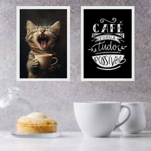 Kit 2 quadros café torna tudo possível - gatinho 45x34cm Cor: moldura branca Informações do produto tire todas as suas dúvidas no descritivo abaixo: decoração para quarto, sala, cozinha, escritório, área gourmet e muito mais. Chega de paredes vazias. Medidas - cada peça tem 45x34cm a3 . Material do papel - papel fotográfico brilhante de altíssima resolução acabamento - todos os quadros são acompanhados de uma película de acetato para proteção da imagem. - os quadros são embalados de forma segura com plástico bolha com camada dupla de acordo com o tamanho dos quadros. - de 3 meses. Meu quadro chegou. Como posso fixá-lo Você precisa apenas de um martelo e um prego, pois os quadros já vão acompanhados de penduradores. Esta é a forma mais indicada. Caso prefira, você pode utilizar uma fita dupla face neste caso, sugerimos de alta qualidade para evitar que descole e seu quadro caia . Como posso limpar meu quadro A limpeza é feita como um móvel comum da sua casa. Apenas um pano seco ou espanador são suficientes para tal Marca: Não Informado