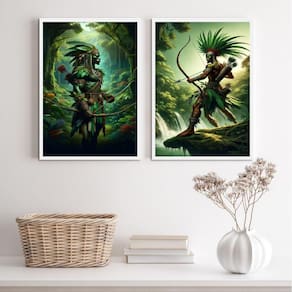 Kit 2 quadros candomblé - oxossi guerreiro 24x18cm Moldura: madeira preta Informações do produto tire todas as suas dúvidas no descritivo abaixo: decoração para quarto, sala, cozinha, escritório, área gourmet e muito mais. Chega de paredes vazias medidas - cada peça tem 24x18cm a5 . Material do papel - papel fotográfico brilhante de altíssima resolução acabamento - todos os quadros são acompanhados de uma película de acetato para proteção da imagem. - os quadros são embalados de forma segura com plástico bolha com camada dupla de acordo com o tamanho dos quadros. Garantia - garantia de 3 meses. Meu quadro chegou. Como posso fixá-lo Você precisa apenas de um martelo e um prego, pois os quadros já vão acompanhados de penduradores. Esta é a forma mais indicada. Caso prefira, você pode utilizar uma fita dupla face neste caso, sugerimos de alta qualidade para evitar que descole e seu quadro caia . Como posso limpar meu quadro A limpeza é feita como um móvel comum da sua casa. Apenas um pano seco ou espanador são suficientes para tal