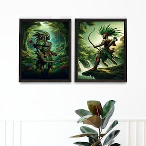 Kit 2 quadros candomblé - oxossi guerreiro 33x24cm Moldura: madeira preta Informações do produto tire todas as suas dúvidas no descritivo abaixo: decoração para quarto, sala, cozinha, escritório, área gourmet e muito mais. Chega de paredes vazias medidas - cada peça tem 33x24cm a4 . Material do papel - papel fotográfico brilhante de altíssima resolução acabamento - todos os quadros são acompanhados de uma película de acetato para proteção da imagem. - os quadros são embalados de forma segura com plástico bolha com camada dupla de acordo com o tamanho dos quadros. Garantia - garantia de 3 meses. Meu quadro chegou. Como posso fixá-lo Você precisa apenas de um martelo e um prego, pois os quadros já vão acompanhados de penduradores. Esta é a forma mais indicada. Caso prefira, você pode utilizar uma fita dupla face neste caso, sugerimos de alta qualidade para evitar que descole e seu quadro caia . Como posso limpar meu quadro A limpeza é feita como um móvel comum da sua casa. Apenas um pano seco ou espanador são suficientes para tal