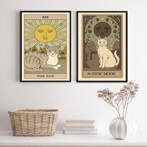 Kit 2 quadros cartas tarot gato- the sun e the moon 33x24cm Moldura: madeira branca Informações do produto tire todas as suas dúvidas no descritivo abaixo: decoração para quarto, sala, cozinha, escritório, área gourmet e muito mais. Chega de paredes vazias medidas - cada peça tem 33x24cm a4 . Material do papel - papel fotográfico brilhante de altíssima resolução acabamento - todos os quadros são acompanhados de uma película de acetato para proteção da imagem. - os quadros são embalados de forma segura com plástico bolha com camada dupla de acordo com o tamanho dos quadros. - de 3 meses. Meu quadro chegou. Como posso fixá-lo Você precisa apenas de um martelo e um prego, pois os quadros já vão acompanhados de penduradores. Esta é a forma mais indicada. Caso prefira, você pode utilizar uma fita dupla face neste caso, sugerimos de alta qualidade para evitar que descole e seu quadro caia . Como posso limpar meu quadro A limpeza é feita como um móvel comum da sua casa. Apenas um pano seco ou espanador são suficientes para tal Marca: Não Informado