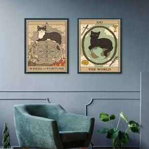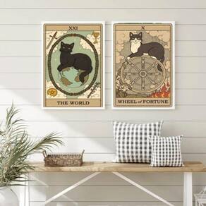 Kit 2 quadros cartas tarot - gatos 24x18cm - com vidro
