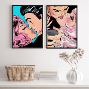 Adquira já o Kit 2 Quadros Casais Beijo Pop Art 33X24Cm e transforme a decoração do seu ambiente com muito estilo e personalidade. Deixe suas paredes mais charmosas e cheias de vida com essa linda obra de arte.
