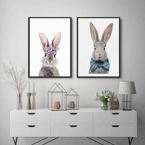 Kit 2 quadros casal de coelhos 24x18cm Moldura: madeira preta Informações do produto tire todas as suas dúvidas no descritivo abaixo: decoração para quarto, sala, cozinha, escritório, área gourmet e muito mais. Chega de paredes vazias medidas - cada peça tem 24x18cm a5 . Material do papel - papel fotográfico brilhante de altíssima resolução acabamento - todos os quadros são acompanhados de uma película de acetato para proteção da imagem. - os quadros são embalados de forma segura com plástico bolha com camada dupla de acordo com o tamanho dos quadros. Garantia - garantia de 3 meses. Meu quadro chegou. Como posso fixá-lo Você precisa apenas de um martelo e um prego, pois os quadros já vão acompanhados de penduradores. Esta é a forma mais indicada. Caso prefira, você pode utilizar uma fita dupla face neste caso, sugerimos de alta qualidade para evitar que descole e seu quadro caia . Como posso limpar meu quadro A limpeza é feita como um móvel comum da sua casa. Apenas um pano seco ou espanador são suficientes para tal