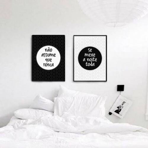 Kit 2 quadros casal ronca e se mexe 24x18cm - com vidro Moldura: madeira preta Informações do produto Decoração para quarto, sala, cozinha, escritório, área gourmet e muito mais. Chega de paredes vazias Medidas - cada peça tem 24x18cm a5 . Material do papel - papel fotográfico brilhante de altíssima resolução Acabamento - todos os quadros são acompanhados de vidro para proteção da imagem. - Moldura em madeira maciça na cor preta e pendurador. - Os quadros são embalados de forma segura com plástico bolha com camada dupla de acordo com o tamanho dos quadros. - de 3 meses. Meu quadro chegou. Como posso fixá-lo Você precisa apenas de um martelo e um prego, pois os quadros já vão acompanhados de penduradores. Esta é a forma mais indicada. Como posso limpar meu quadro A limpeza é feita como um móvel comum da sua casa. Apenas um pano seco ou espanador são suficientes para tal Marca: Não Informado