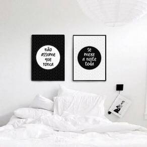 Kit 2 quadros casal ronca e se mexe 33x24cm - com vidro Moldura: madeira branca Informações do produto tire todas as suas dúvidas no descritivo abaixo: decoração para quarto, sala, cozinha, escritório, área gourmet e muito mais. Chega de paredes vazias medidas - cada peça tem 33x24cm a4 . Material do papel - papel fotográfico brilhante de altíssima resolução acabamento - todos os quadros são acompanhados de vidro para proteção da imagem. - moldura em madeira maciça na cor preta e pendurador . - os quadros são embalados de forma segura com plástico bolha com camada dupla de acordo com o tamanho dos quadros. - de 3 meses. Meu quadro chegou. Como posso fixá-lo Você precisa apenas de um martelo e um prego, pois os quadros já vão acompanhados de penduradores. Esta é a forma mais indicada. Como posso limpar meu quadro A limpeza é feita como um móvel comum da sua casa. Apenas um pano seco ou espanador são suficientes para tal Marca: Não Informado