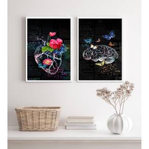 Kit 2 quadros cérebro coração- flores e borboletas 45x34cm Moldura: madeira preta Informações do produto tire todas as suas dúvidas no descritivo abaixo: decoração para quarto, sala, cozinha, escritório, área gourmet e muito mais. Chega de paredes vazias. Medidas - cada peça tem 45x34cm a3 . Material do papel - papel fotográfico brilhante de altíssima resolução acabamento - todos os quadros são acompanhados de uma película de acetato para proteção da imagem. - os quadros são embalados de forma segura com plástico bolha com camada dupla de acordo com o tamanho dos quadros. - de 3 meses. Meu quadro chegou. Como posso fixá-lo Você precisa apenas de um martelo e um prego, pois os quadros já vão acompanhados de penduradores. Esta é a forma mais indicada. Caso prefira, você pode utilizar uma fita dupla face neste caso, sugerimos de alta qualidade para evitar que descole e seu quadro caia . Como posso limpar meu quadro A limpeza é feita como um móvel comum da sua casa. Apenas um pano seco ou espanador são suficientes para tal Marca: Não Informado