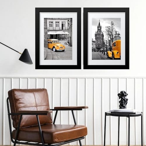 Kit 2 quadros cidades carros amarelos - 60x48cm Moldura: madeira branca Informações do produto tire todas as suas dúvidas no descritivo abaixo: decoração para quarto, sala, cozinha, escritório, área gourmet e muito mais. Chega de paredes vazias medidas - cada peça tem 60x48cm . Material do papel - papel fotográfico brilhante de altíssima resolução acabamento - todos os quadros são acompanhados de vidro para proteção da imagem. - moldura em madeira maciça na cor preta ou branca conforme produto escolhido e pendurador. - paspatur branco com 7cm de largura - os quadros são embalados de forma segura com plástico bolha com camada dupla de acordo com o tamanho dos quadros. - de 3 meses. Meu quadro chegou. Como posso fixá-lo Você precisa apenas de um martelo e um prego, pois os quadros já vão acompanhados de penduradores. Esta é a forma mais indicada. Como posso limpar meu quadro A limpeza é feita como um móvel comum da sua casa. Apenas um pano seco ou espanador são suficientes para tal Marca: Não Informado Ean: 7890778175559