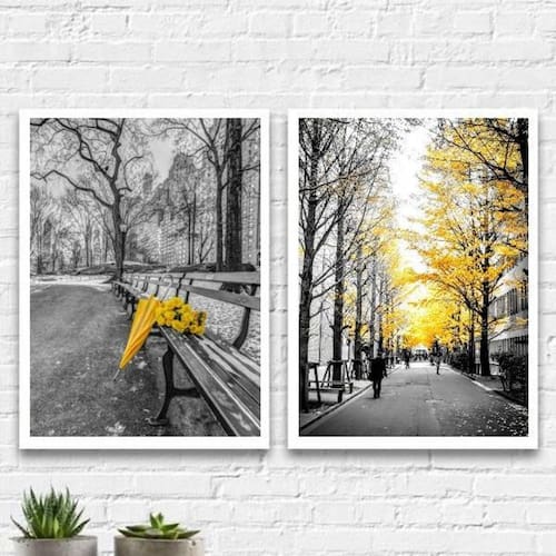 Kit 2 quadros cidades flores amarelas 45x34cm Moldura: madeira branca Informações do produto Decoração para quarto, sala, cozinha, escritório, área gourmet e muito mais. Chega de paredes vazias Medidas - cada peça tem 45x34cm a3 . Material do papel - papel fotográfico brilhante de altíssima resolução Acabamento - todos os quadros são acompanhados de uma película de acetato para proteção da imagem. - Os quadros são embalados de forma segura com plástico bolha com camada dupla de acordo com o tamanho dos quadros. - de 3 meses. Meu quadro chegou. Como posso fixá-lo Você precisa apenas de um martelo e um prego, pois os quadros já vão acompanhados de penduradores. Esta é a forma mais indicada. Caso prefira, você pode utilizar uma fita dupla face neste caso, sugerimos de alta qualidade para evitar que descole e seu quadro caia . Como posso limpar meu quadro A limpeza é feita como um móvel comum da sua casa. Apenas um pano seco ou espanador são suficientes para tal