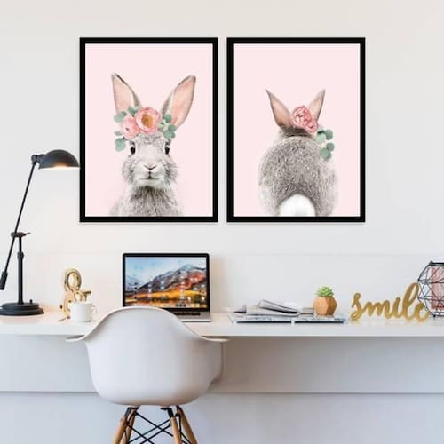 Kit 2 quadros coelhinha floral rosa 24x18cm Moldura: madeira preta Informações do produto tire todas as suas dúvidas no descritivo abaixo: decoração para quarto, sala, cozinha, escritório, área gourmet e muito mais. Chega de paredes vazias medidas - cada peça tem 24x18cm a5 . Material do papel - papel fotográfico brilhante de altíssima resolução acabamento - todos os quadros são acompanhados de uma película de acetato para proteção da imagem. - os quadros são embalados de forma segura com plástico bolha com camada dupla de acordo com o tamanho dos quadros. Garantia - garantia de 3 meses. Meu quadro chegou. Como posso fixá-lo Você precisa apenas de um martelo e um prego, pois os quadros já vão acompanhados de penduradores. Esta é a forma mais indicada. Caso prefira, você pode utilizar uma fita dupla face neste caso, sugerimos de alta qualidade para evitar que descole e seu quadro caia . Como posso limpar meu quadro A limpeza é feita como um móvel comum da sua casa. Apenas um pano seco ou espanador são suficientes para tal