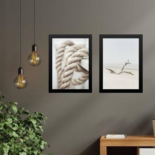 Kit 2 quadros coleção praia - corda e tronco 24x18cm - com vidro Moldura: madeira preta Informações do produto tire todas as suas dúvidas no descritivo abaixo: decoração para quarto, sala, cozinha, escritório, área gourmet e muito mais. Chega de paredes vazias medidas - cada peça tem 24x18cm a5 . Material do papel - papel fotográfico brilhante de altíssima resolução acabamento - todos os quadros são acompanhados de vidro para proteção da imagem. - moldura em madeira maciça na cor preta ou branca conforme produto escolhido e pendurador . - os quadros são embalados de forma segura com plástico bolha com camada dupla de acordo com o tamanho dos quadros. - de 3 meses. Meu quadro chegou. Como posso fixá-lo Você precisa apenas de um martelo e um prego, pois os quadros já vão acompanhados de penduradores. Esta é a forma mais indicada. Como posso limpar meu quadro A limpeza é feita como um móvel comum da sua casa. Apenas um pano seco ou espanador são suficientes para tal