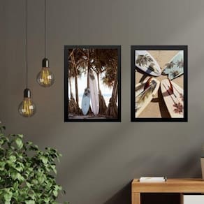 Kit 2 quadros coleção praia surf - pranchas 24x18cm Moldura: madeira preta Informações do produto tire todas as suas dúvidas no descritivo abaixo: decoração para quarto, sala, cozinha, escritório, área gourmet e muito mais. Chega de paredes vazias medidas - cada peça tem 24x18cm a5 . Material do papel - papel fotográfico brilhante de altíssima resolução acabamento - todos os quadros são acompanhados de uma película de acetato para proteção da imagem. - os quadros são embalados de forma segura com plástico bolha com camada dupla de acordo com o tamanho dos quadros. Garantia - garantia de 3 meses. Meu quadro chegou. Como posso fixá-lo Você precisa apenas de um martelo e um prego, pois os quadros já vão acompanhados de penduradores. Esta é a forma mais indicada. Caso prefira, você pode utilizar uma fita dupla face neste caso, sugerimos de alta qualidade para evitar que descole e seu quadro caia . Como posso limpar meu quadro A limpeza é feita como um móvel comum da sua casa. Apenas um pano seco ou espanador são suficientes para tal