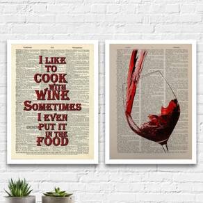 Kit 2 Quadros Cooking With Wine 33X24Cm - Com Vidro