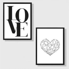 Kit 2 Quadros Coração Geométrico 24X18Cm 002