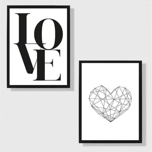Kit 2 Quadros Coração Geométrico 24X18Cm Moldura: madeira branca Informações do produto Decoração para quarto, sala, cozinha, escritório, área gourmet e muito mais. Chega de paredes vazias. Medidas - cada peça tem 24x18cm a5 . Material do papel - papel fotográfico brilhante de altíssima resolução Acabamento - todos os quadros são acompanhados de uma película de acetato para proteção da imagem. - moldura em madeira maciça na cor branca e pendurador móvel que pode ser retirado facilmente caso deseje fixar com fita dupla face. - os quadros são embalados de forma segura com plástico bolha com camada dupla de acordo com o tamanho dos quadros. - de 3 meses Meu quadro chegou. Como posso fixá-lo: Você precisa apenas de um martelo e um prego, pois os quadros já vão acompanhados de penduradores. Esta é a forma mais indicada. Caso prefira, você pode utilizar uma fita dupla face neste caso, sugerimos de alta qualidade para evitar que descole e seu quadro caia . Como posso limpar meu quadro: A limpeza é feita como um móvel comum da sua casa. Apenas um pano seco ou espanador são suficientes para tal