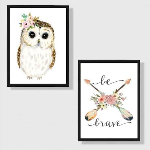 Kit 2 quadros corujinha be brave 33x24cm - com vidro Moldura: madeira branca Informações do produto tire todas as suas dúvidas no descritivo abaixo: decoração para quarto, sala, cozinha, escritório, área gourmet e muito mais. Chega de paredes vazias medidas - cada peça tem 33x24cm a4 . Material do papel - papel fotográfico brilhante de altíssima resolução acabamento - todos os quadros são acompanhados de vidro para proteção da imagem. - moldura em madeira maciça na cor preta e pendurador . - os quadros são embalados de forma segura com plástico bolha com camada dupla de acordo com o tamanho dos quadros. - de 3 meses. Meu quadro chegou. Como posso fixá-lo Você precisa apenas de um martelo e um prego, pois os quadros já vão acompanhados de penduradores. Esta é a forma mais indicada. Como posso limpar meu quadro A limpeza é feita como um móvel comum da sua casa. Apenas um pano seco ou espanador são suficientes para tal Marca: Não Informado