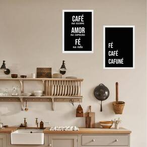 Kit 2 quadros cozinha café e fé 24x18cm Moldura: madeira branca Informações do produto tire todas as suas dúvidas no descritivo abaixo: decoração para quarto, sala, cozinha, escritório, área gourmet e muito mais. Chega de paredes vazias medidas - cada peça tem 24x18cm a5 . Material do papel - papel fotográfico brilhante de altíssima resolução acabamento - todos os quadros são acompanhados de uma película de acetato para proteção da imagem. - os quadros são embalados de forma segura com plástico bolha com camada dupla de acordo com o tamanho dos quadros. Garantia - garantia de 3 meses. Meu quadro chegou. Como posso fixá-lo Você precisa apenas de um martelo e um prego, pois os quadros já vão acompanhados de penduradores. Esta é a forma mais indicada. Caso prefira, você pode utilizar uma fita dupla face neste caso, sugerimos de alta qualidade para evitar que descole e seu quadro caia . Como posso limpar meu quadro A limpeza é feita como um móvel comum da sua casa. Apenas um pano seco ou espanador são suficientes para tal