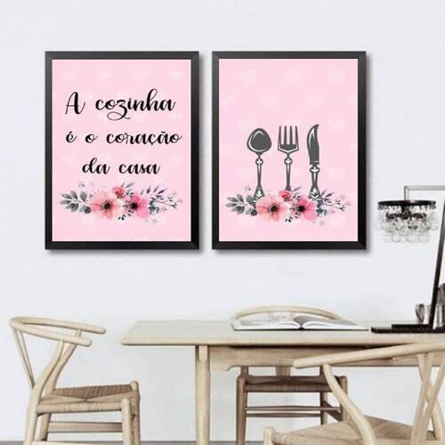 Kit 2 quadros cozinha coração da casa rosa 24x18cm Moldura: madeira preta Informações do produto tire todas as suas dúvidas no descritivo abaixo: decoração para quarto, sala, cozinha, escritório, área gourmet e muito mais. Chega de paredes vazias medidas - cada peça tem 24x18cm a5 . Material do papel - papel fotográfico brilhante de altíssima resolução acabamento - todos os quadros são acompanhados de uma película de acetato para proteção da imagem. - moldura em madeira maciça na cor preta e pendurador móvel que pode ser retirado facilmente caso deseje fixar com fita dupla face. - os quadros são embalados de forma segura com plástico bolha com camada dupla de acordo com o tamanho dos quadros. Ean: 7892090543658