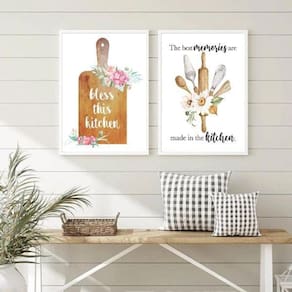 Kit 2 quadros cozinha - momentos abençoados 33x24cm - com vidro Moldura: madeira branca Informações do produto tire todas as suas dúvidas no descritivo abaixo: decoração para quarto, sala, cozinha, escritório, área gourmet e muito mais. Chega de paredes vazias medidas - cada peça tem 33x24cm a4 . Material do papel - papel fotográfico brilhante de altíssima resolução acabamento - todos os quadros são acompanhados de vidro para proteção da imagem. - moldura em madeira maciça na cor preta ou branca conforme produto escolhido e pendurador . - os quadros são embalados de forma segura com plástico bolha com camada dupla de acordo com o tamanho dos quadros. Garantia - garantia de 3 meses. Meu quadro chegou. Como posso fixá-lo Você precisa apenas de um martelo e um prego, pois os quadros já vão acompanhados de penduradores. Esta é a forma mais indicada. Como posso limpar meu quadro A limpeza é feita como um móvel comum da sua casa. Apenas um pano seco ou espanador são suficientes para tal