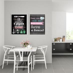 Kit 2 quadros cozinha pequena - lave a louça 33x24cm Moldura: madeira preta Informações do produto tire todas as suas dúvidas no descritivo abaixo: decoração para quarto, sala, cozinha, escritório, área gourmet e muito mais. Chega de paredes vazias medidas - cada peça tem 33x24cm a4 . Material do papel - papel fotográfico brilhante de altíssima resolução acabamento - todos os quadros são acompanhados de uma película de acetato para proteção da imagem. - os quadros são embalados de forma segura com plástico bolha com camada dupla de acordo com o tamanho dos quadros. Garantia - garantia de 3 meses. Meu quadro chegou. Como posso fixá-lo Você precisa apenas de um martelo e um prego, pois os quadros já vão acompanhados de penduradores. Esta é a forma mais indicada. Caso prefira, você pode utilizar uma fita dupla face neste caso, sugerimos de alta qualidade para evitar que descole e seu quadro caia . Como posso limpar meu quadro A limpeza é feita como um móvel comum da sua casa. Apenas um pano seco ou espanador são suficientes para tal