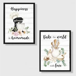 Kit 2 quadros cozinha provençal - confeitaria 33x24cm - com vidro Cor: moldura branca Informações do produto tire todas as suas dúvidas no descritivo abaixo: decoração para quarto, sala, cozinha, escritório, área gourmet e muito mais. Chega de paredes vazias medidas - cada peça tem 33x24cm a4 . Material do papel - papel fotográfico brilhante de altíssima resolução acabamento - todos os quadros são acompanhados de vidro para proteção da imagem. - moldura em madeira maciça na cor preta ou branca conforme produto escolhido e pendurador . - os quadros são embalados de forma segura com plástico bolha com camada dupla de acordo com o tamanho dos quadros. - de 3 meses. Meu quadro chegou. Como posso fixá-lo Você precisa apenas de um martelo e um prego, pois os quadros já vão acompanhados de penduradores. Esta é a forma mais indicada. Como posso limpar meu quadro A limpeza é feita como um móvel comum da sua casa. Apenas um pano seco ou espanador são suficientes para tal Marca: Não Informado