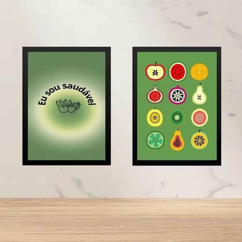 Kit 2 quadros cozinha saudável 33x24cm - com vidro Cor: moldura branca Informações do produto tire todas as suas dúvidas no descritivo abaixo: decoração para quarto, sala, cozinha, escritório, área gourmet e muito mais. Chega de paredes vazias medidas - cada peça tem 33x24cm a4 . Material do papel - papel fotográfico brilhante de altíssima resolução acabamento - todos os quadros são acompanhados de vidro para proteção da imagem. - moldura em madeira maciça na cor preta ou branca conforme produto escolhido e pendurador . - os quadros são embalados de forma segura com plástico bolha com camada dupla de acordo com o tamanho dos quadros. Garantia - garantia de 3 meses. Meu quadro chegou. Como posso fixá-lo Você precisa apenas de um martelo e um prego, pois os quadros já vão acompanhados de penduradores. Esta é a forma mais indicada. Como posso limpar meu quadro A limpeza é feita como um móvel comum da sua casa. Apenas um pano seco ou espanador são suficientes para tal