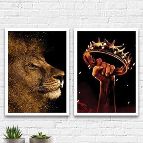 Kit 2 Quadros Cristão Leão E Coroa 24X18Cm